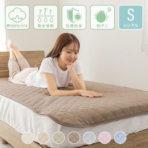 敷きパッド シングル 綿100% パイル 吸水速乾 タオル地【モカベージュ】