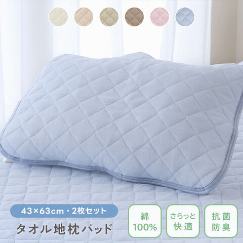 枕パッド 【2枚セット】 綿100% パイル 吸湿 さらさら 抗菌防臭 防ダニ タオル地 43×63 コットン オールシーズン 【スモークブルー】