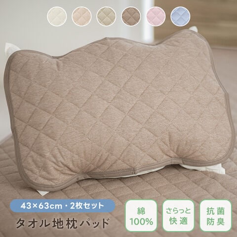 枕パッド 【2枚セット】 綿100% パイル 吸湿 さらさら 抗菌防臭 防ダニ タオル地 43×63 コットン オールシーズン 【モカベージュ】