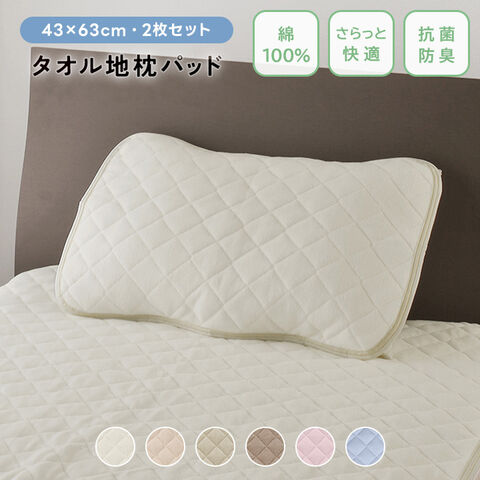 枕パッド 【2枚セット】 綿100% パイル 吸湿 さらさら 抗菌防臭 防ダニ タオル地 43×63 コットン オールシーズン 【ミルクアイボリー】