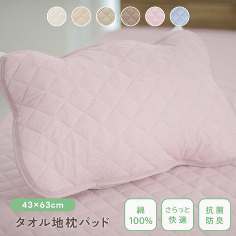 枕パッド 綿100% パイル 吸湿 さらさら 抗菌防臭 防ダニ タオル地 43×63 コットン オールシーズン 【ダスティピンク】