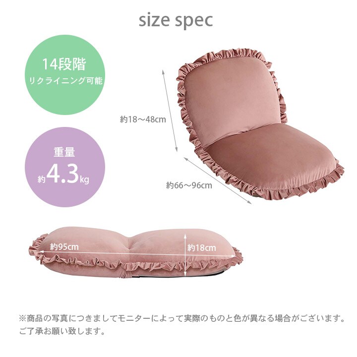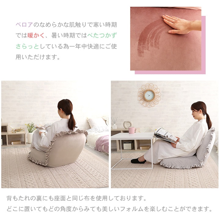 | ベロア座椅子 | 約52X66-96X18-48cm (フリル幅5cm含まず) |