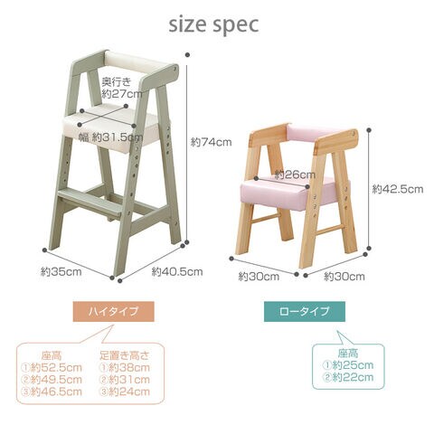 | キッズチェア | 【ハイタイプ】 約35x40.5x74cm 【ロータイプ】 約30x30x42.5cm |