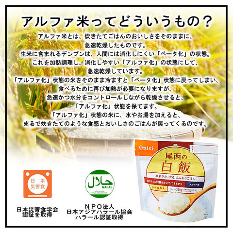 尾西の白飯 非常食アルファ米 【非常食 防災非常食 防災グッズ 防災用品 避難セット 避難グッズ 非常持ち出しセット α米 アルファ米 保存食 災害備蓄用 備蓄用 備蓄米】