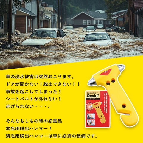 【車載必須】脱出ハンマーDash2窓ガラス破壊&シートベルトカッター付き 緊急脱出ツール【車載用 車載用防災 車載用防災グッズ 用 クルマ用 車載用防災セット 車載用避難セット 車載用避難グッズ 大雪対策 大雪 立往生 集中豪雨対策 車用 クルマ 車 カー用品 社用車】