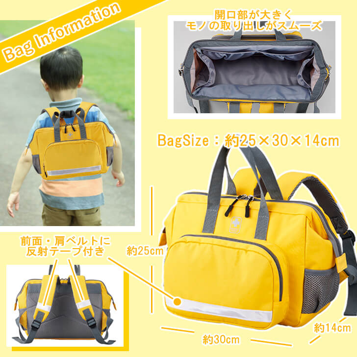 夜間停電時の避難の際に役立つ反射材グッズや、ホイッスルの他に迷子対策のIDカードもセット。