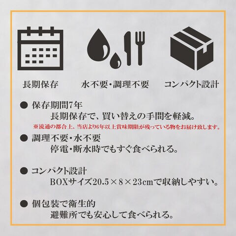 注意事項 賞味期限は製造日より7年となりますが、流通の都合上弊社より6年以上賞味期限が残っている物を発送させて頂きます。