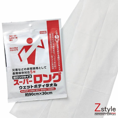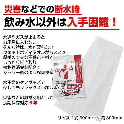ロング ウェットボディタオル【長期保存 5年保存 防災グッズ 防災用品 避難グッズ 避難用品 断水対策 非常用 体拭き】