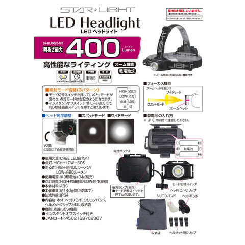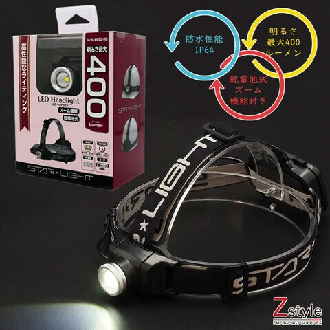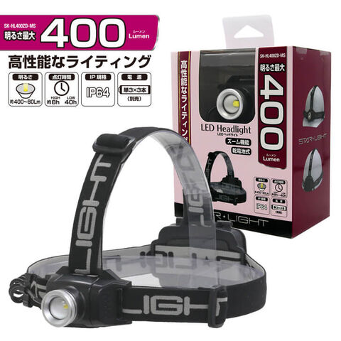 【400ルーメン超高輝度】LEDヘッドライト 電池式 防水 IP65|アウトドア・登山・作業用に最適|角度調整&軽量設計|ハンズフリーライト 停電 フォーカス機能搭載 防塵・防水 400ルーメン 点灯時間8-40時間 防災 STARLIGHT スターライト 星光商事