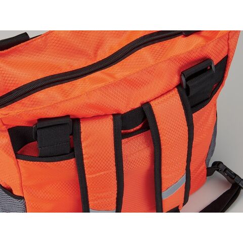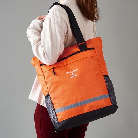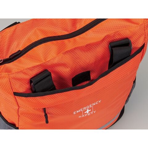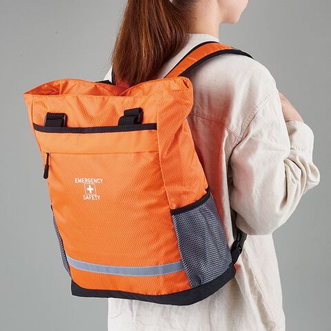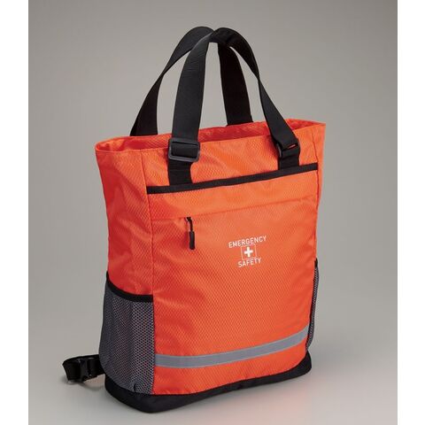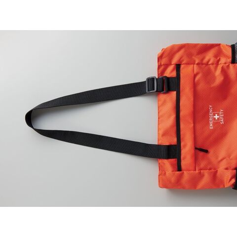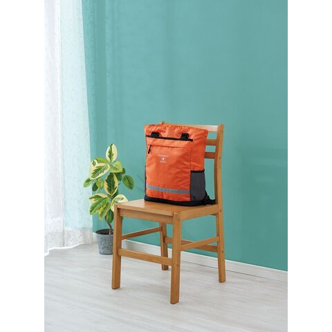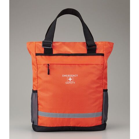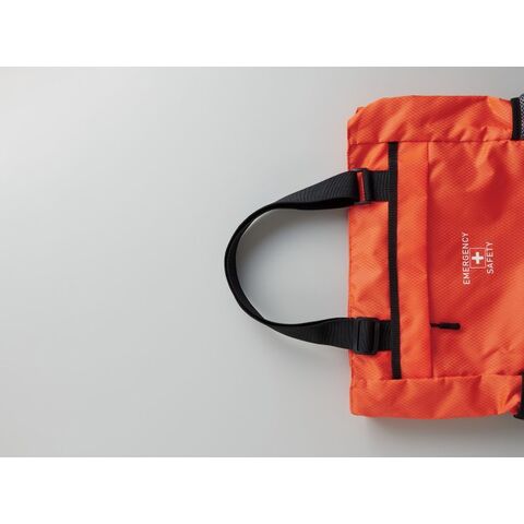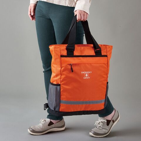 肩掛けトートも出来る2WAY仕様の避難用リュックに、各種防災グッズをセット。