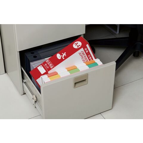 A4サイズパッケージ入りで、書棚やデスクの引き出しに収納可能。