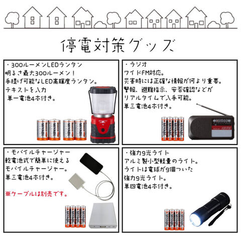 セットされている防災グッズは、メーカーの仕様変更・デザイン変更などによって変更となる場合がございます。