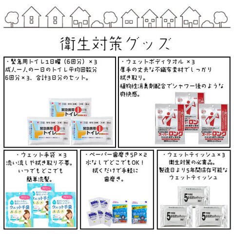 在宅避難の際、停電や断水が起こった場合に役立つ防災グッズをこのワンボックスにセットした防災セットです。