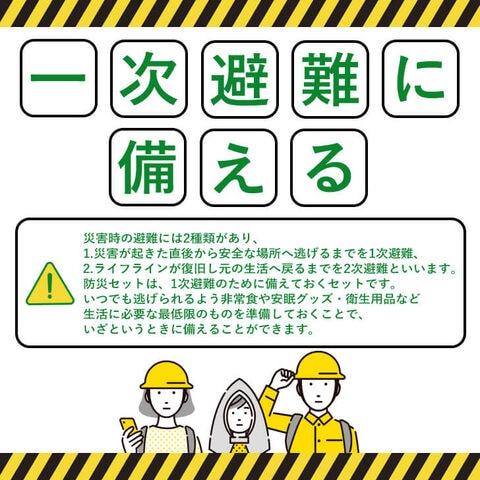 防災セットは、1次避難のために備えておくセットです。