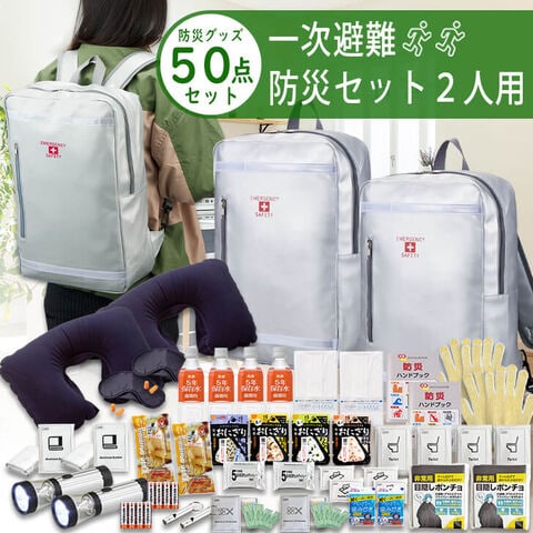 1人分の必要な防災グッズが入った一人用の防災セットを二つセットした2人用防災セット。