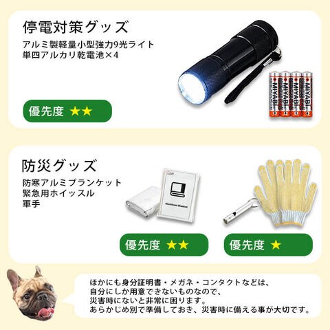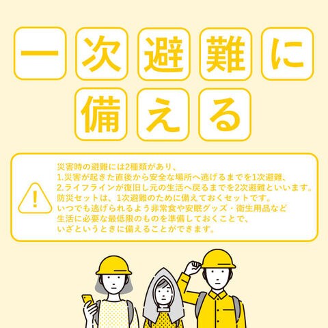防災セットは、1次避難のために備えておくセットです。