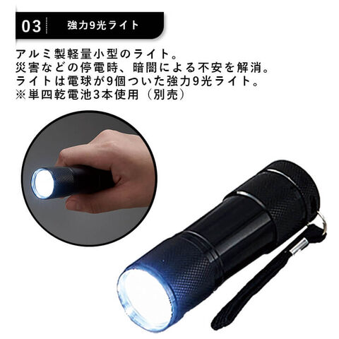 アルミ製強力9光ライト(単四電池×3本使用・別売)