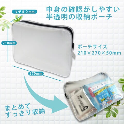 収納ポーチ 中身の確認がしやすい半透明の収納ポーチ。