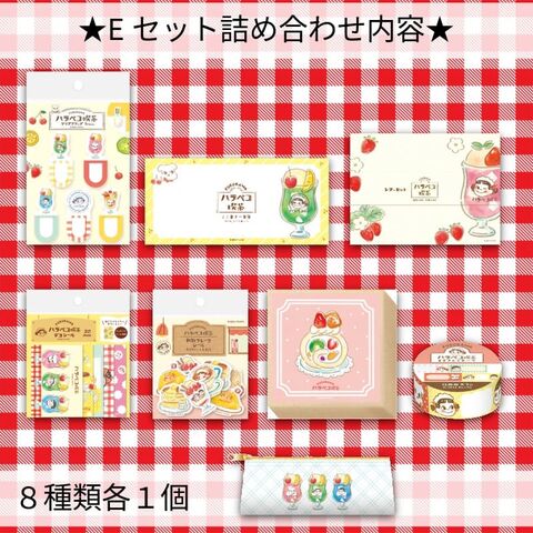 不二家 公式 ハラペコ喫茶 ステーショナリーセットE ペコちゃん かわいい レター デコ クリアクリップ マスキングテープ シール フレークシール メモ ペンケース ふでばこ 文具 文房具セット 詰め合わせ