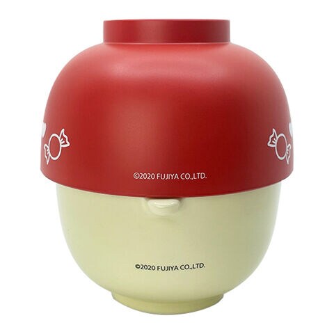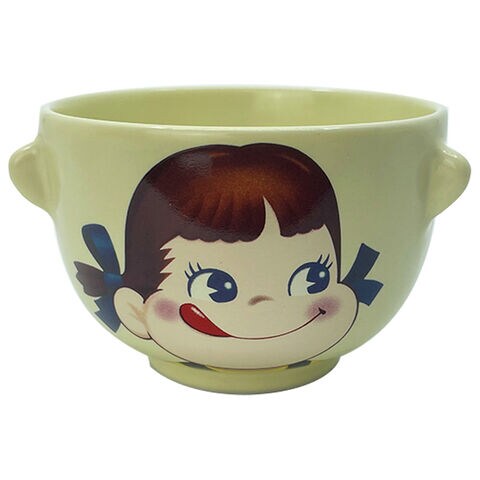 ペコちゃんデザインのお椀と、ミルキーのイラストがプリントされた汁椀のセットです。