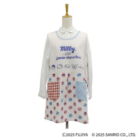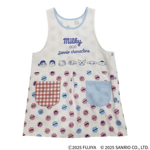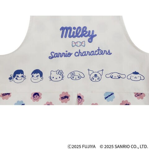 ミルキーの個装柄にペコちゃん、ポコちゃんとサンリオキャラクターズのデザインがカワイイエプロンです。