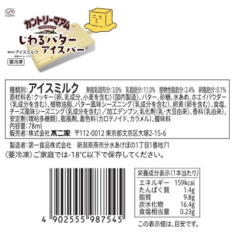 ・じわるバターアイス:卵、乳、小麦、大豆