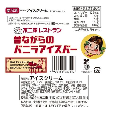 ・昔ながらのバニラアイスバー:卵、乳