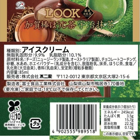・LOOK加賀棒ほうじ茶 宇治抹茶:乳、大豆