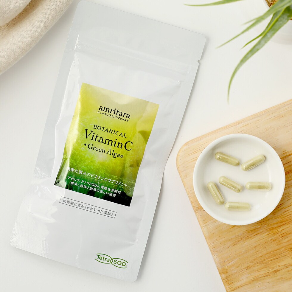 アムリターラ(amritara) ボタニカルビタミンC+グリーンアルジー 90粒 サプリメント サプリ ビタミンC カプセル グリーンアルジー 葉酸 アセロラ 健康食品 栄養機能食品