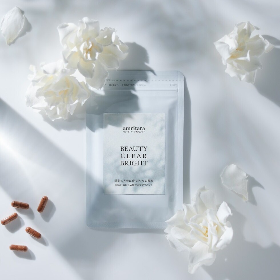 ビューティ クリア ブライト 30粒 植物のポリフェノールをぎゅっと閉じ込めた、 飲む日差しケアサプリメントが登場です。 お召し上がり方