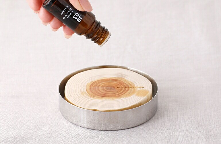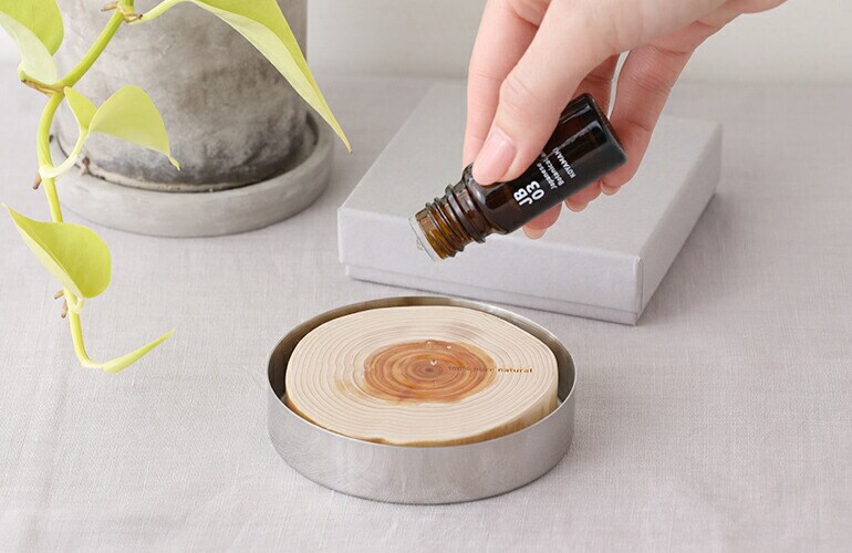 ┃使い方 ![]() 木の表面にエッセンシャルオイルを3滴ほど垂らしてください。 |