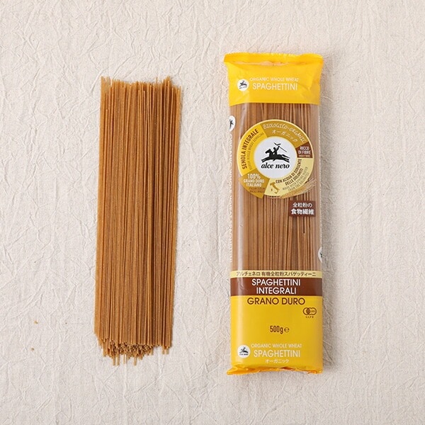| 画像は全粒粉スパゲッティ×〉〉有機パスタソース(トマト&バジル) スパゲッティはお好みのソースに、スパゲッティーニは繊細な味付けのソースや冷製パスタに◎ ゆで方 1.水を用意する(目安:パスタ100gに対し水1.5L) 2.水を沸騰させ塩を加える(目安:水1Lに対し塩10g) 3.標準ゆで時間ゆでる | ||||||||||||||