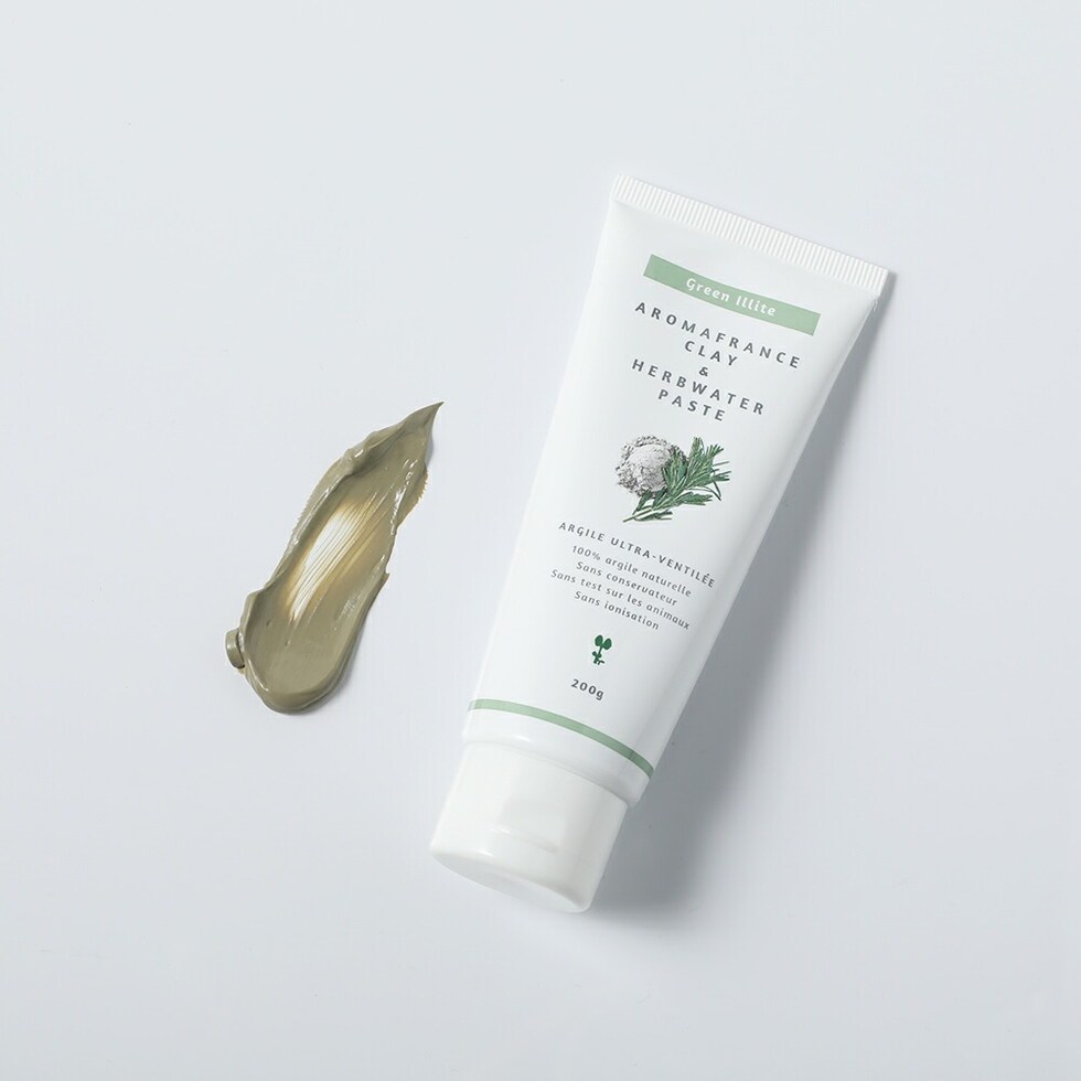 使いやすいペーストタイプ。 アロマフランスのグリーンイライト*とローズマリーハーブウォーター**を独自のレシピでブレンド。パウダータイプのクレイから作るクレイペーストに近いテクスチャ―を再現しています。 *イライト・カオリン・モンモリロナイト(洗浄成分) **ローズマリー葉水(整肌成分)| グリーンイライト