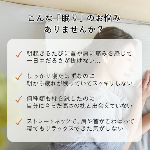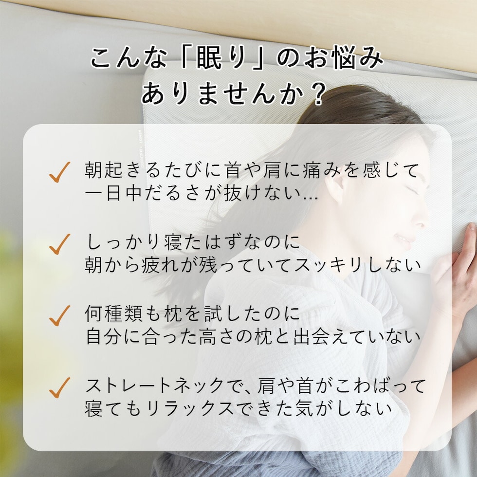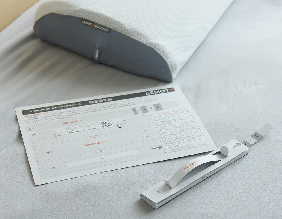 付属の簡易測定器を使えば、自宅に居ながら手軽に最適な高さをチェックすることができます。首を最適な高さで支えることで、ぐっすり眠れる理想の寝姿勢へと導きます。 | カラー
