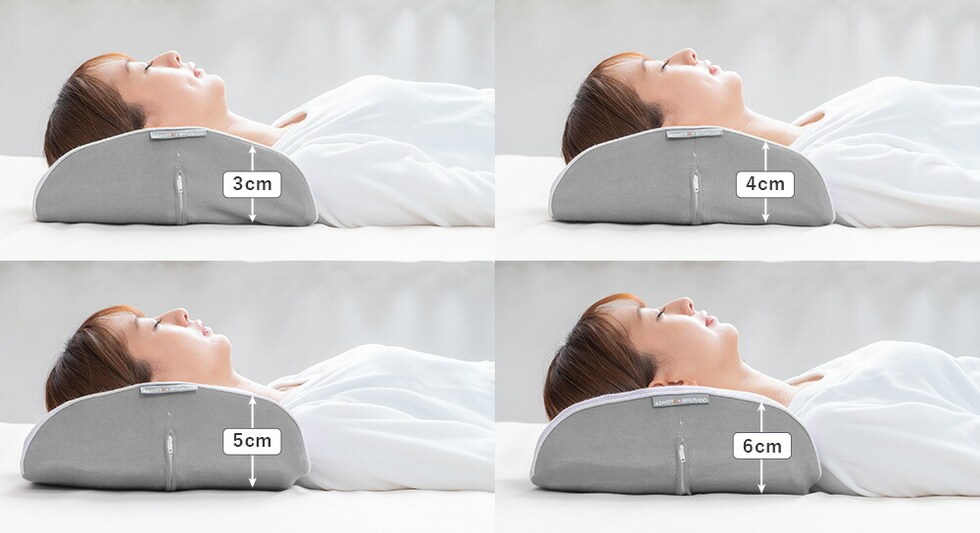 オーダーメイドのように、ぴったりフィット。 3~6cm、4段階の高さ調整パッドで、お好みの高さに簡単カスタマイズ。