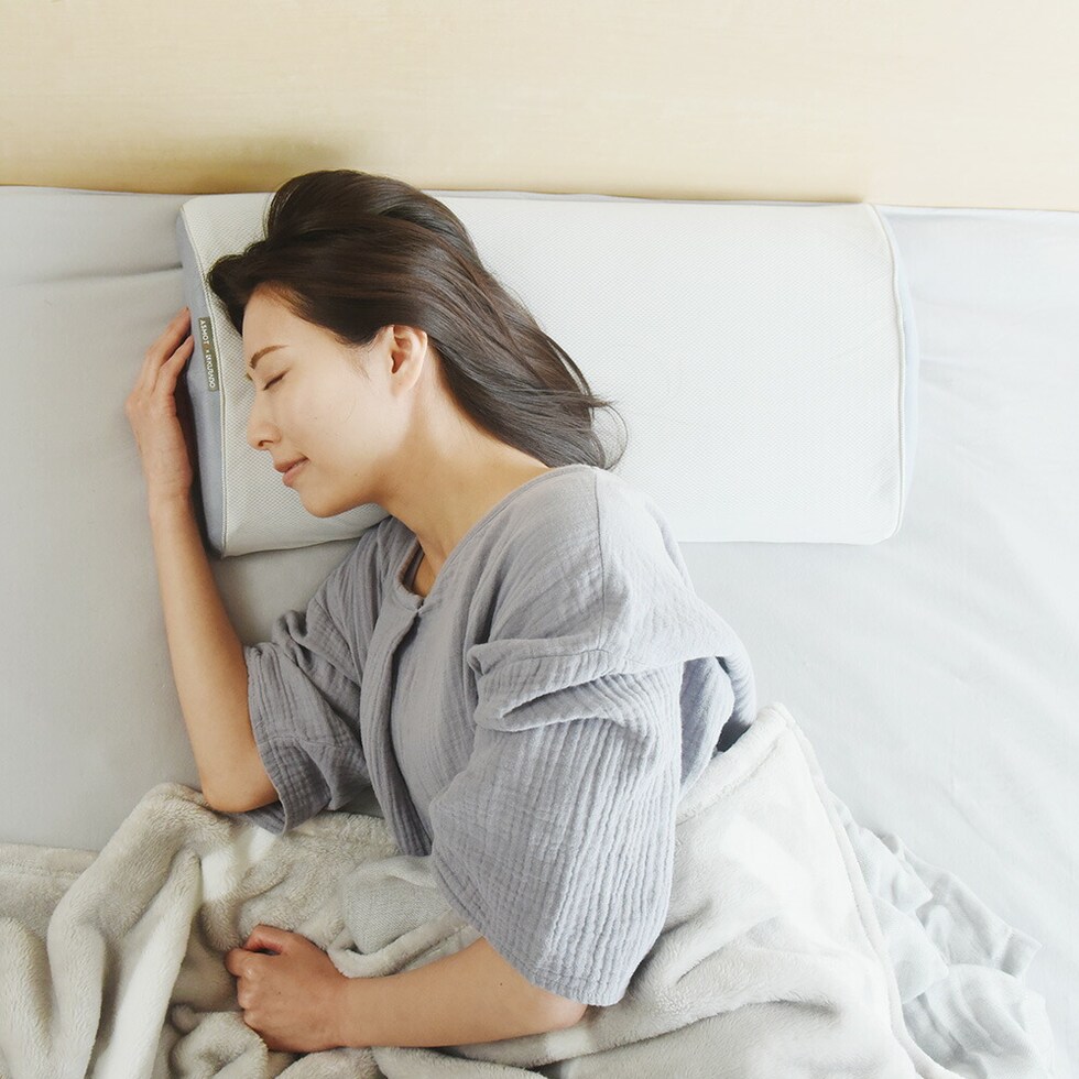 頭をのせた瞬間にフィット。 さらに、枕幅60cmのワイド設計なので、寝返りをうっても快適。どんな寝姿勢でもふんわりと支えてくれる安心感で、快眠をサポートします。