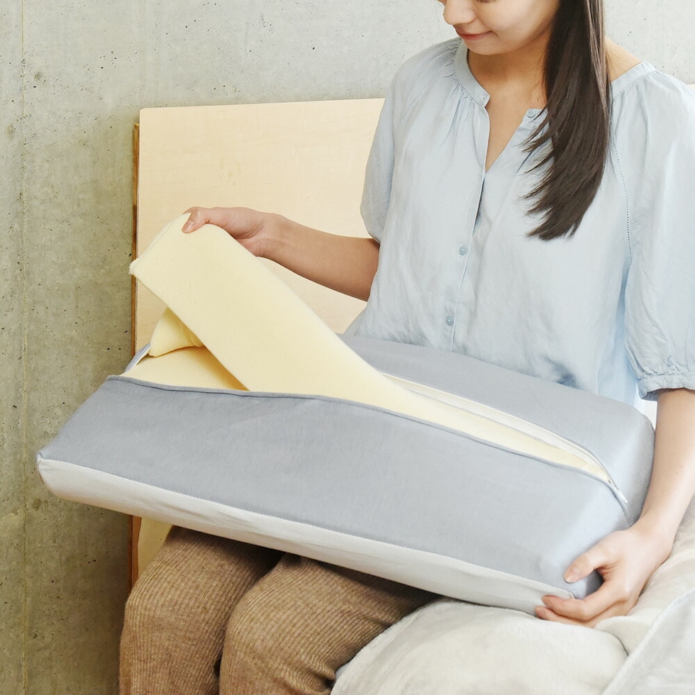 さらっとなめらかな肌ざわりの、専用枕カバーをかけた状態でお届けします。 | 4段階の高さ調節