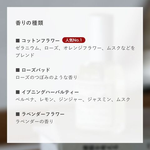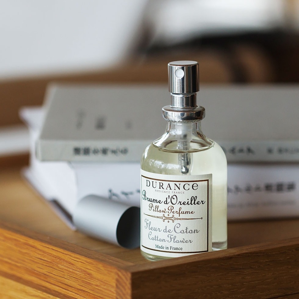 シーツなどのリネンまわりにシュッとひと吹き。 デュランスのピローミストは、リネン廻りにスプレーしてお使いください。