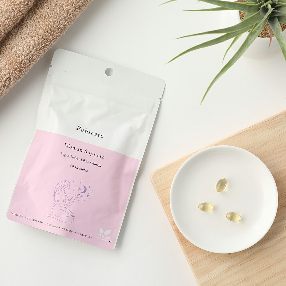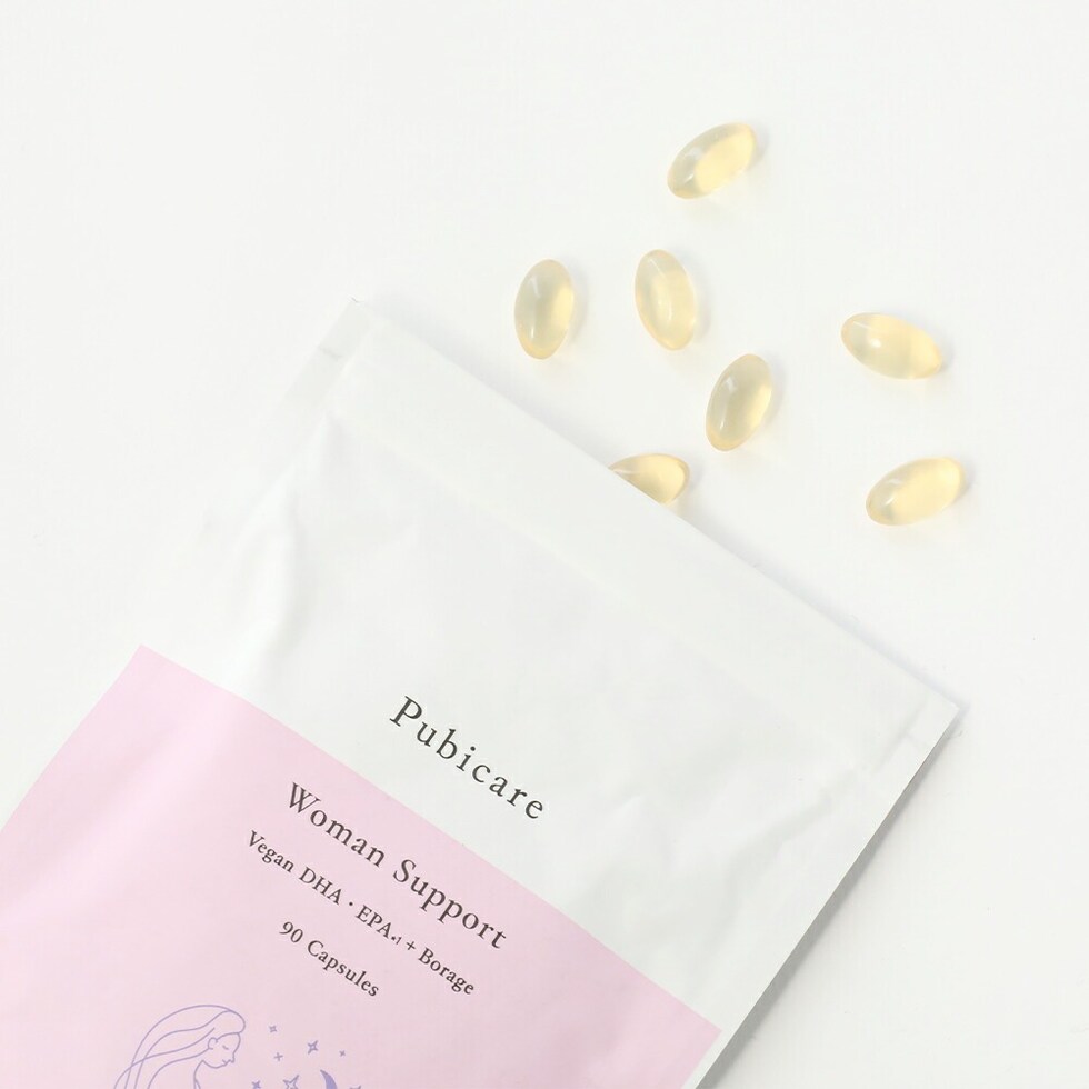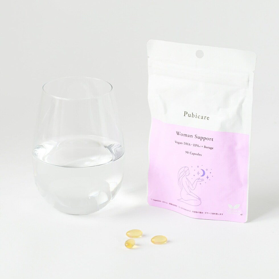 Pubicare Organic (ピュビケア オーガニック)ウーマンサポート/ヴィーガンDHA・EPA+Borage 90カプセル | 1ヶ月分 サプリメント ヴィーガン ビーガン 女性ホルモン オメガ3 ボラージオイル DHA インナーケア 植物性