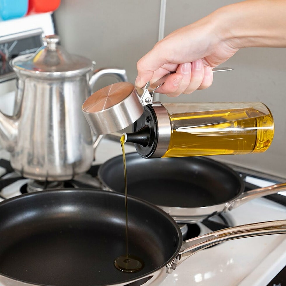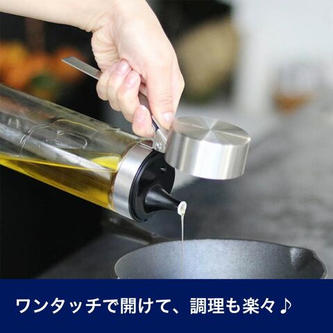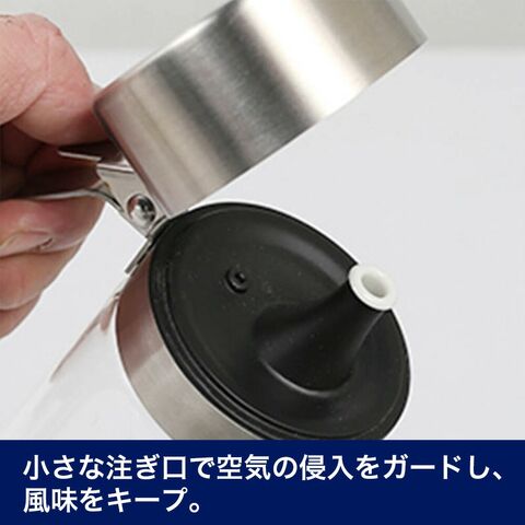 いつでも新鮮な一滴を食卓に♪ 美味しい風味をそのままお料理に活かすためには、酸化を防ぐことが重要です。このボトルは、小さな注ぎ口で空気の侵入をしっかりガードし、風味をキープ。必要な量を少しずつ注げるので、ムダなく使えて便利なオイル&ビネガー専用ボトルです。 | 片手で使えて調理も楽々♪