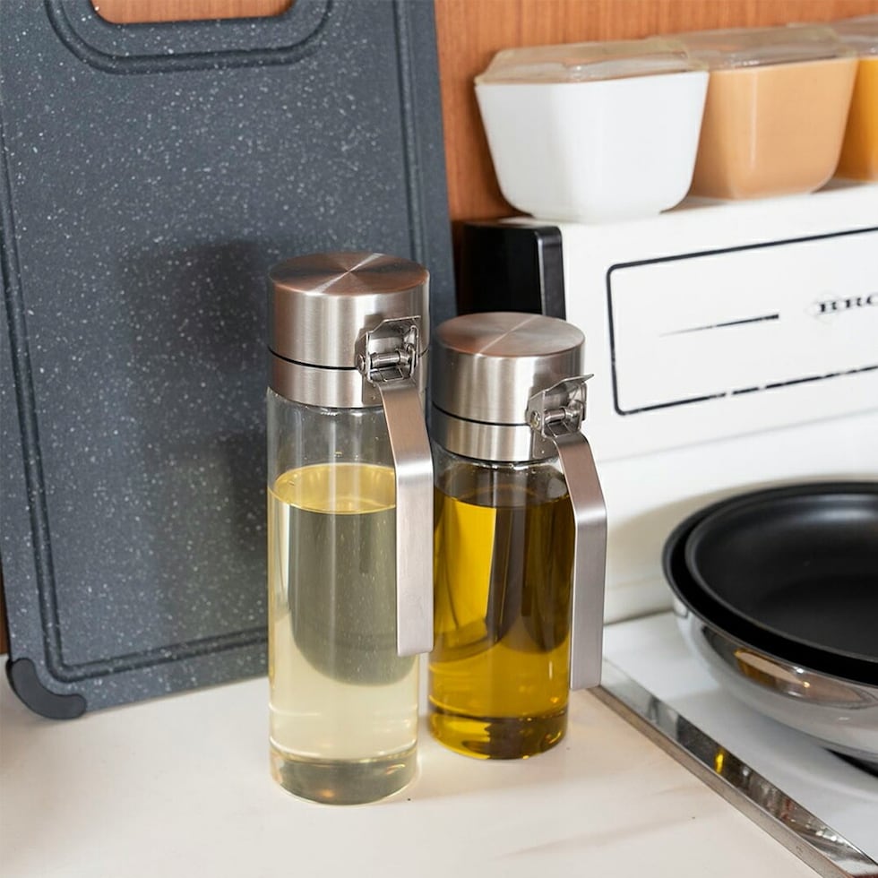 【2個セット】ダルトン 調味料入れ オイル&ヴィネガーボトル 350ml DULTON オイルボトル 油ポット オイルポット 液だれしない ガラス おしゃれ 耐熱 ステンレス ドレッシング 醤油差し 片手開閉 衛生的 使いやすい