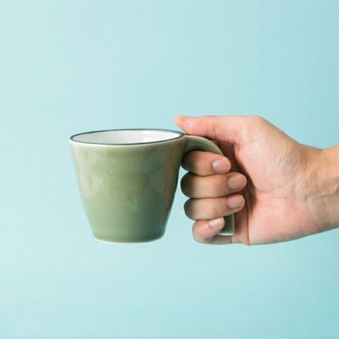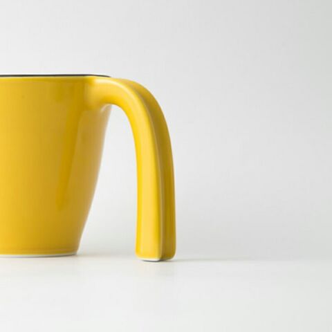 このマグの一番の特徴でもある、ながーいハンドル。実は、使いやすさを求めた結果、たどり着いた形だったんです。マグの底と同じくテーブルと接し、底とハンドルの2点で支えることで、テーブルに置いた時の安定感が違います。