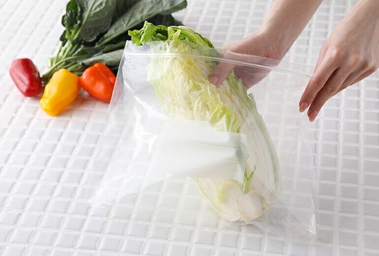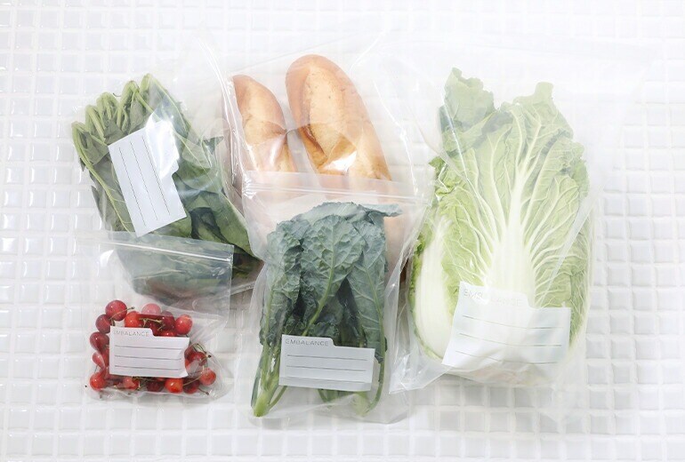 | もう食材は捨てない。 驚くほど鮮度が長持ちする食品保存袋。 あれこれ野菜を買いだめすると、使い切る前に傷んでしまって捨てることに。 食品ロスを減らすためにも役立つ、エンバランスの食品保存袋が登場です。 入れておくだけで鮮度を保ってくれるので、買ってきた野菜をそのまま入れても、使いかけの野菜を保存するのもおすすめ。 普通であれば1週間で傷んでしまうような葉物野菜も、2〜3週間鮮度を保たせることも◎。 冷凍保存にも使用でき、野菜だけでなくお肉やお魚、パンなど幅広い食品にお使いいただけます。 洗浄や長時間の使用で効果が損なわれる心配も少ないため、何度でも繰り返し洗ってお使いいただけます。 XS・S・Mwide・L・XLの5種類のサイズ展開。入れるものの大きさに合わせてご使用ください。 | |