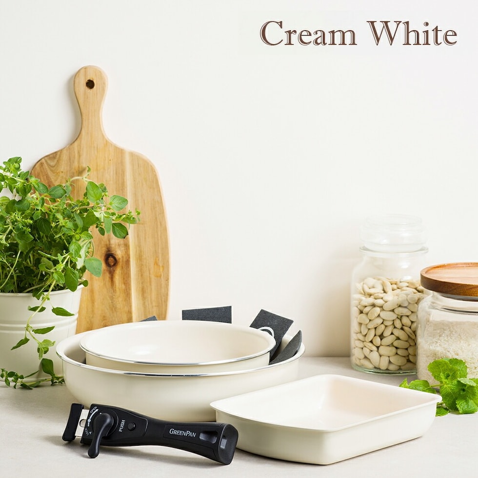 クリームホワイト セラミックコーティングだからできる明るいカラーリングはキッチンを華やかにします。調理中の食材の変化やソースの色みの変化が分かりやすいのも嬉しいポイント。