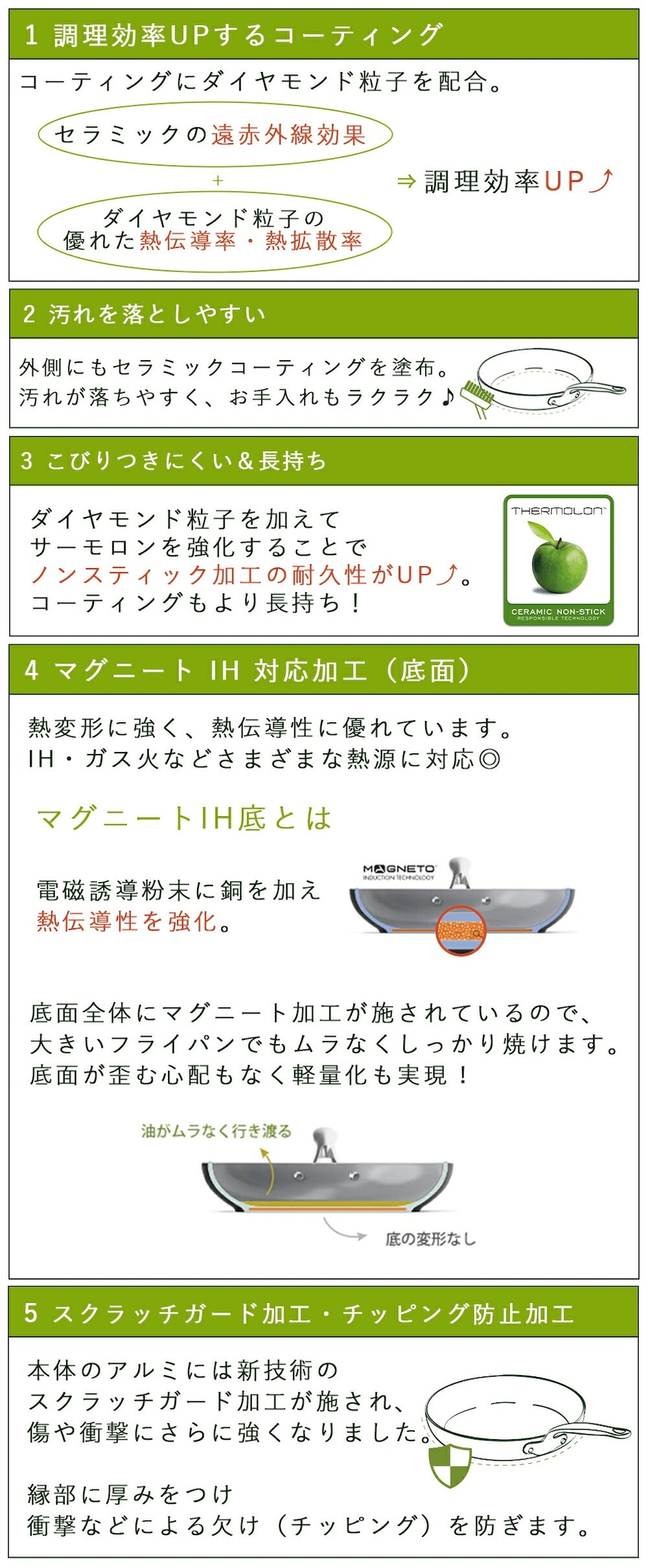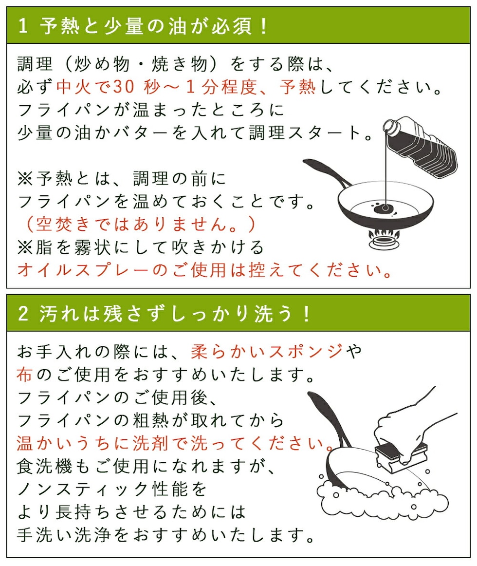 | グリーンパン使いこなしのコツ 最適な火加減でご使用の上、正しいお手入れをしていただくことで、性能を十分に引き出し、長く・快適にご愛用いただくことができます。 はじめてご使用になる前に 〇梱包資材やラベルなどは全て取り除いてください。 使い方のポイント