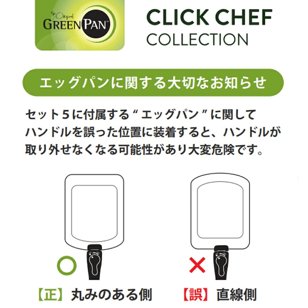 WEB限定カラー9点セットが登場! 着脱ハンドルで使いやすさアップの「クリックシェフ」シリーズに、エッグパンが加わったオンラインショップ限定カラーの9点セットが登場! | セット内容