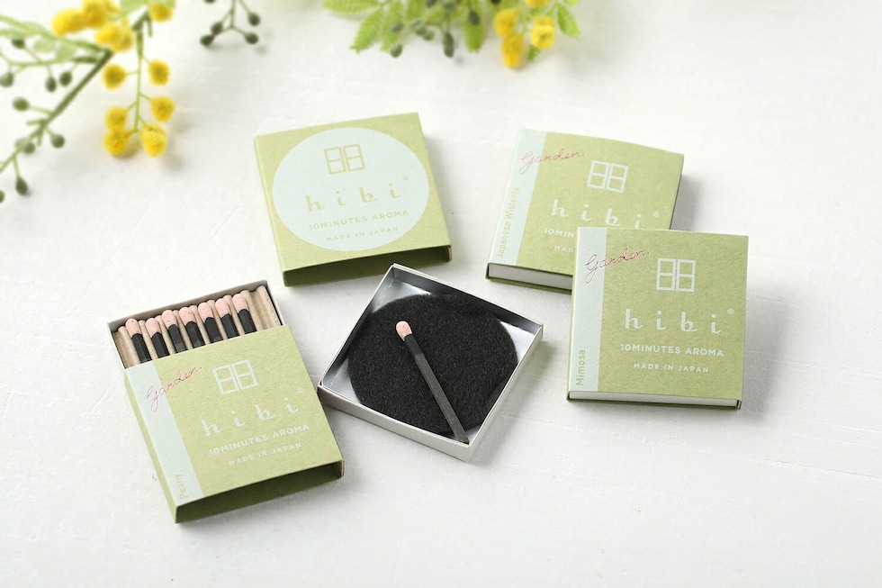 hibi ヒビ garden. 10MINUTES AROMA レギュラーボックス 8本入 専用マット付 ガーデン フローラルシリーズ お香 神戸マッチ | アロマ ミモザ 藤 ウィステリア ピオニー 芍薬 マッチ ギフト リラックス
