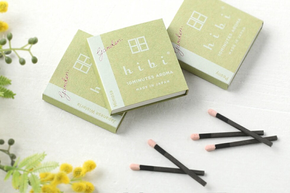 hibi ヒビ garden. 10MINUTES AROMA レギュラーボックス 8本入 ガーデンシリーズ 専用マット無し お香 神戸マッチ | アロマ ミモザ 藤 ウィステリア ピオニー 芍薬 マッチ ギフト リラックス