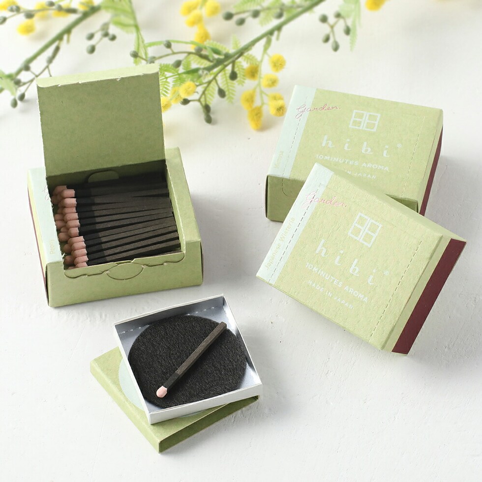 hibi ヒビ garden. 10MINUTES AROMA ラージボックス 30本入 専用マット付き ガーデンシリーズ お香 神戸マッチ | アロマ ミモザ 藤 ウィステリア ピオニー 芍薬 マッチ ギフト リラックス