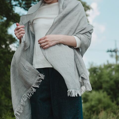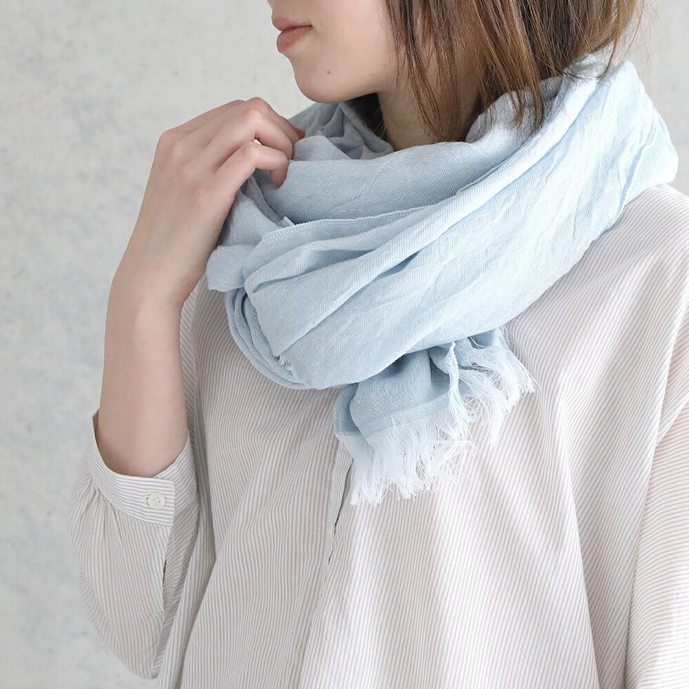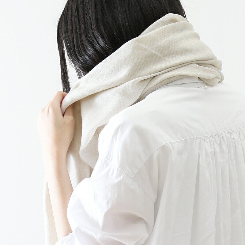程よいハリ感でふんわり立体感のある仕上がりに。首に巻いておしゃれに日焼け対策も。